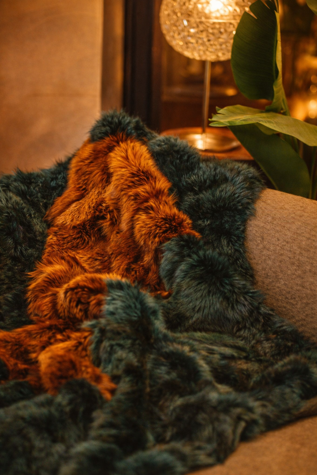 Fox bedspread in green-rust color
